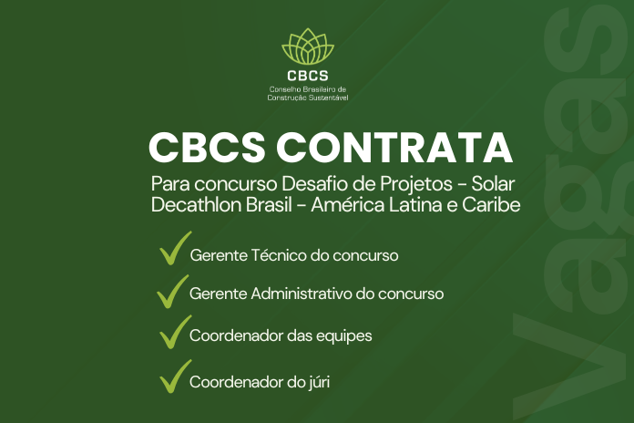 O Conselho Brasileiro de Construção Sustentável (CBCS) está contratando profissionais em cargos de especialista para atuação na implementação do concurso Desafio de Projetos – Solar