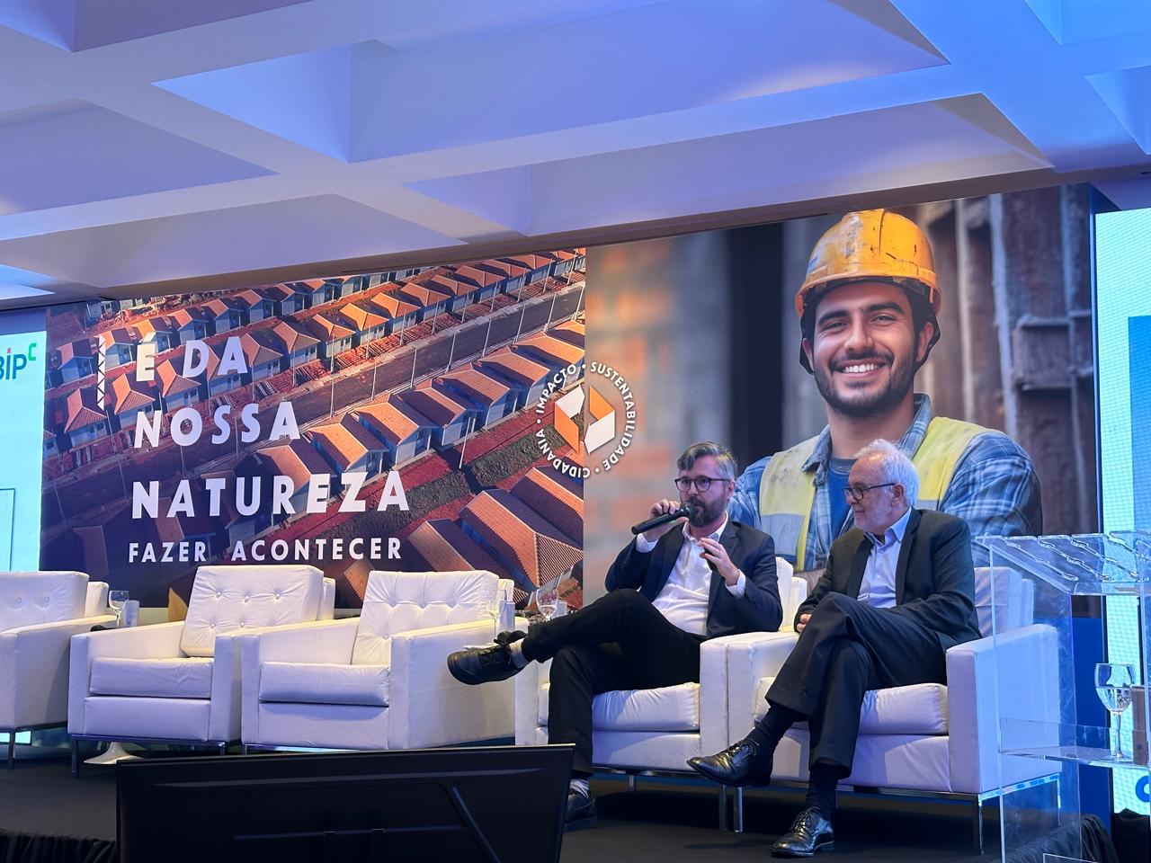 Prof. Vanderley John (à direita) e o Prof. Lucas Melchiori Pereira (FAU USP) no lançamento da Plataforma BIPc