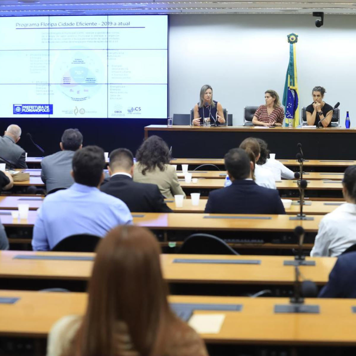 O painel contou com a participação de Clarice Degani, diretora executiva do CBCS, e da arquiteta Cibele Assmann, gerente de Inovação da Secretaria de Planejamento e Desenvolvimento Urbano de Florianópolis, que apresentaram os principais componentes do Programa Cidades Eficientes, realizado pelo CBCS, com o apoio do Instituto Clima e Sociedade (iCS), e a sua implementação pela Prefeitura de Florianópolis, iniciada desde a fase piloto do Programa, em 2018. “Foi importante trazer para os municípios e para quem trabalha com as políticas públicas na área de cidades sustentáveis, a temática da eficiência energética na ótica da gestão das cidades: como você pode melhorar esta gestão e como é que a eficiência energética faz parte desse rol de ações que têm que ser feitas para promover a sustentabilidade das cidades”, complementa Alexandra.
