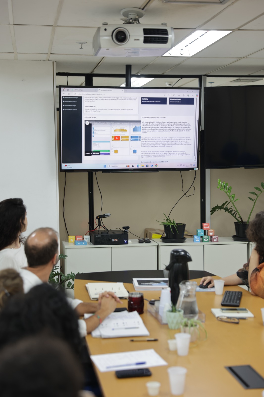 Durante a exibição dos resultados, Maria Andrea Triana, coordenadora técnica do Programa Cidades Eficientes, enfatizou que esse foi o segundo ano de trabalho com a Prefeitura do Rio de Janeiro e, por isso, foi possível consolidar muitas ações e avançar ainda mais. Ela também destacou o apoio e fundamental engajamento do Escritório de Planejamento e da Secretaria Municipal de Educação. A reunião de apresentação dos resultados foi realizada no dia 18 de dezembro, na sede do Escritório de Planejamento e contou também com as presenças de Clarice Degani, diretora executiva do CBCS, e Giselle Bahiense Lyra, pesquisadora do Programa Cidades Eficientes. Do Escritório de Planejamento estiveram presentes, além de Daniel e Pedro, Aline Xavier, Coordenadora de Estratégias de Planejamento, Bruna Macciantelli, Gerente de Novos Modelos em Sustentabilidade e Resiliência, e os estagiários Ana Beatriz Pires, Felipe Furtado, Karen de Oliveira e Luis Felipe de Almeida. Da Secretaria de Educação, estavam presentes as professoras Luciana Costa e Leila Santos.